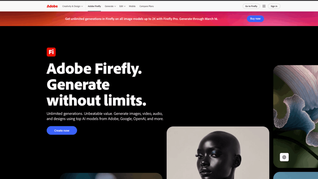 The deep integration into Photoshop (Generative Fill, Generative Expand), Illustrator, and Express makes it genuinely different from standalone tools. You can select an area in Photoshop, type a prompt, and the AI fills it seamlessly — preserving lighting, perspective, and layer structure. This eliminates the export-edit-reimport cycle that other tools require.