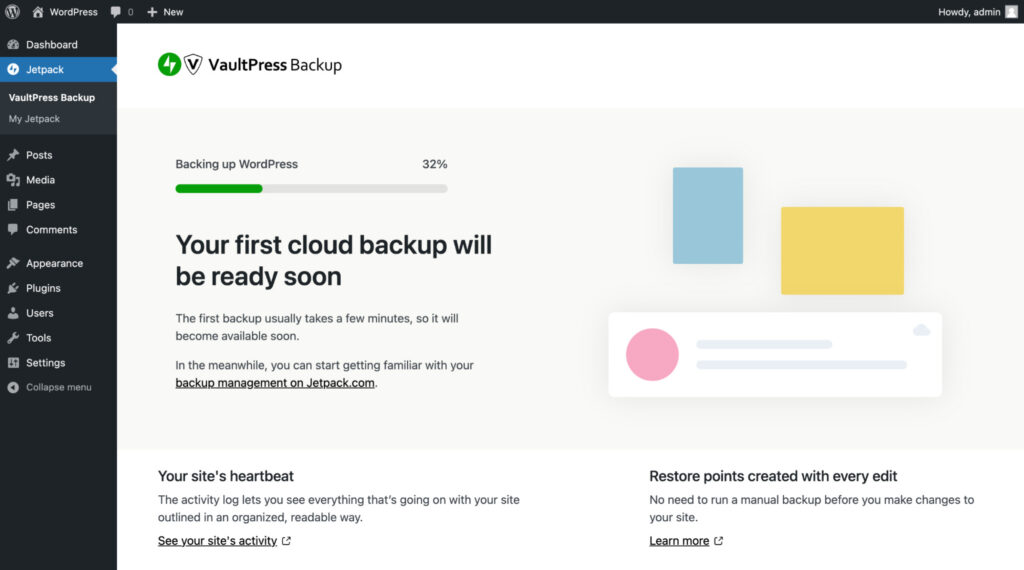 Jetpack VaultPress Backup, developed by Automattic, is praised for its real-time backup capabilities and tight integration with WordPress. Its integration allows quick restores even during complete site outages, making it a strong choice for ecommerce and content-heavy websites.